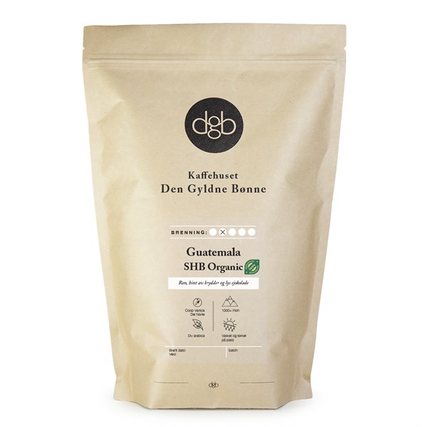 Økologisk kaffe fra Guatemala dyrket 1.400 meter over havet. Høyden over havet sammen med det vulkanske jordsmonnet bidrar til den gode smaken. En fyldig og god kaffe med elegant og balansert syrlighet. Dette er en hverdagskaffe med klassisk smak og fordi kaffe fra Guatemala har vært en viktig del av mange kaffeblandinger i mange tiår vil smaken og aromaen vekke gode minner hos mange blant de litt "voksne" i befolkningen.