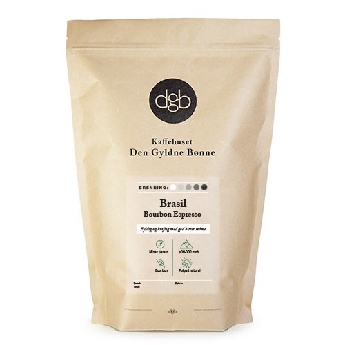 Denne espressoen inneholder 100% Bourbon Arabica. Brasil Bourbon Espresso er en klassisk espresso med god styrke og fin bitter sødme. Den er enkel, ukomplisert og lett å arbeide med. Den passer også vedlig godt til kaffemaskiner og automater med innebygget kvern.